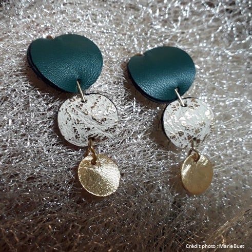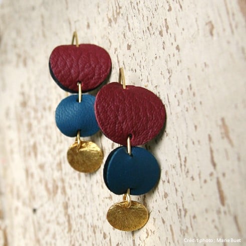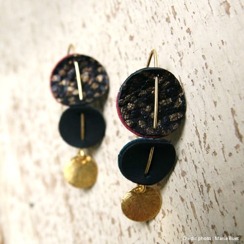 Boucles d'oreilles réversibles à assortir à toutes les circonstances. Plutôt chic ou plutôt casual ? A vous de choisir en tournant les pastilles de cuir !